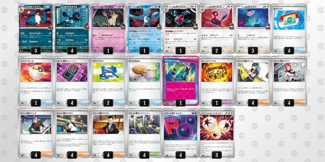 環境でもすぐに戦えるロケっと団のドンカラスデッキです! 公式デッキシールドもランダムで1つおまけしちゃいます! 多様なサポートで展開・妨害しつつドンカラスで大ダメージ! 終盤はポリゴンで大ダメージ! ミミッキュとフリーザーで器用な動きもできちゃいます^^ シングルでそろえるよりも大変お買い得ですので、ぜひお試しください。