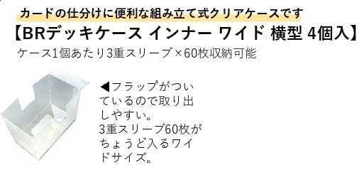3重スリーブ x 60枚がちょうど入るワイドケース。カードの仕分けに便利な簡単組立式で、フラップが付いているのでカードがスムーズに取り出せます。